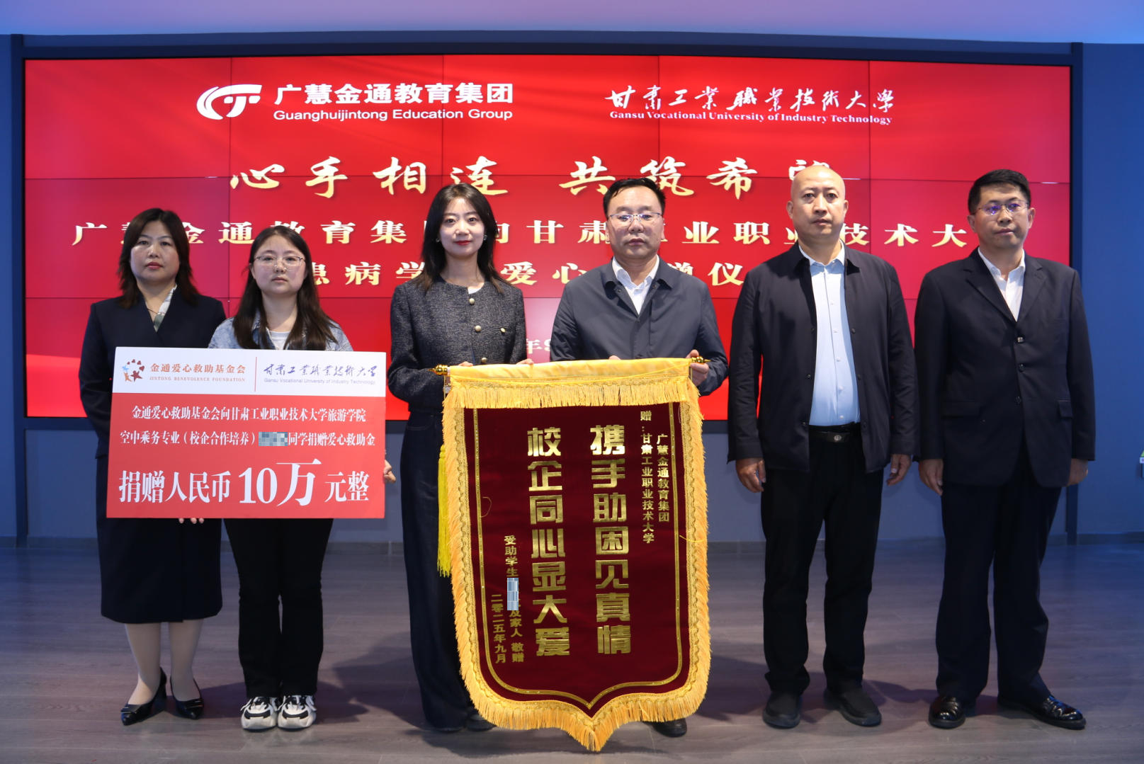 苗雪表示,广慧金通教育集团始终秉持“以人为本”的理念,积极履行企业社会责任。此次通过“集团爱心救助基金”捐赠善款10万元,旨在切实帮助学生家庭缓解医疗压力,传递企业与学校的温暖关怀。