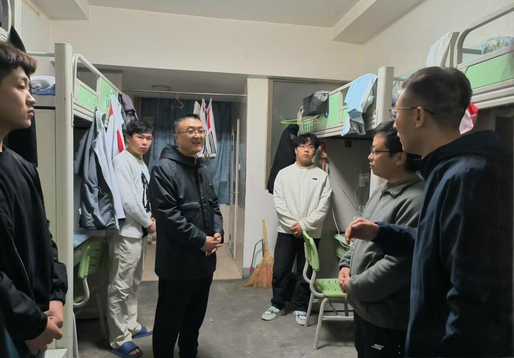 在辅导员值班室,坚葆林详细了解学生思想动态排查、家校沟通等工作开展情况。他指出,辅导员是连接学校与学生的“桥梁纽带”,要充分发挥一线育人作用,严格落实值班制度,及时回应学生关切;要注重人文关怀,关注学生身心健康,通过常态化走访和谈心谈话,切实帮助学生解决学习生活中的实际困难,让宿舍真正成为学生安心学习、舒心生活的“第二个家”。