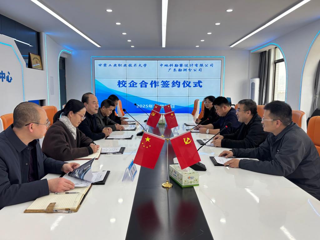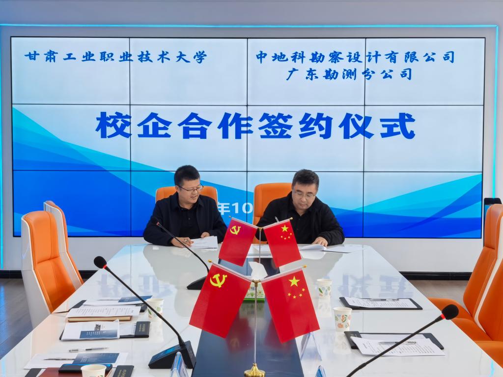 10月31日下午,我校与中地科勘察设计有限公司广东勘测分公司校企合作签约仪式在工程实训楼高分中心会议室顺利举行。副校长周晓明,中地科广东勘测分公司总经理徐晓阳出席仪式,相关二级学院领导班子及教师代表共同参加。