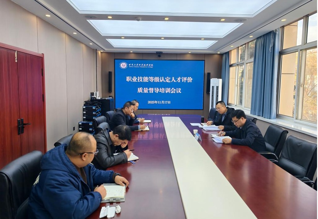 为深入贯彻《甘肃省技能人才评价质量督导工作指引(试行)》及《关于进一步规范职业技能培训管理工作的通知》文件精神,进一步加强职业技能评价规范管理,建设高素质内部质量督导员队伍,11月17日,学校在行政楼三楼会议室召开职业技能等级认定人才评价质量督导培训会议。副校长曹惠清出席会议,相关职能部门及二级学院负责人参加。
