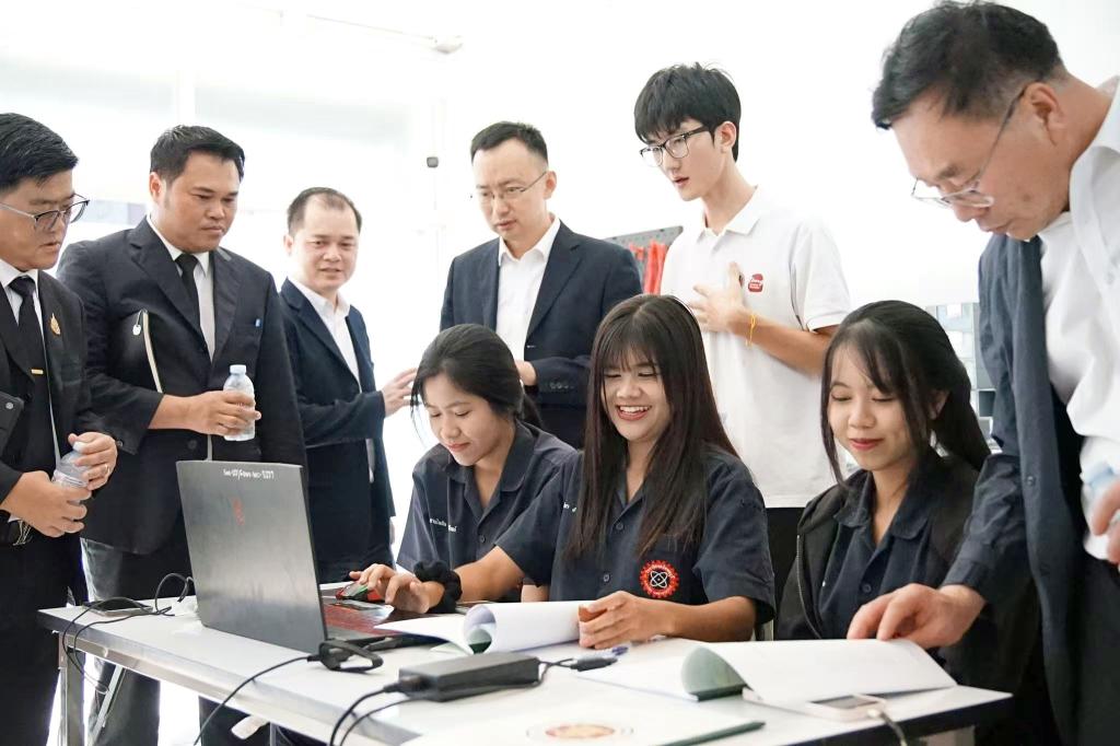 在泰国,代表团先后访问了国际教育中心和东部地区职业教育中心。双方就推动中泰工程教育项目合作、国际化课程联合共建、学术交流及海外培训基地建设等议题达成广泛共识。东部职教中心主任那隆•卡社披班、泰国唐风国际产教合作经理逯耀隆与我校共同签署了合作备忘录,为未来持续深化合作奠定了坚实基础。