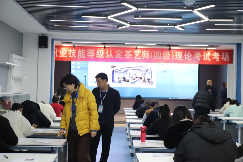 11月22日,我校顺利开展茶艺师(四级)职业技能等级认定考试工作,副校长曹惠清亲临现场,对考务工作进行督查与指导。