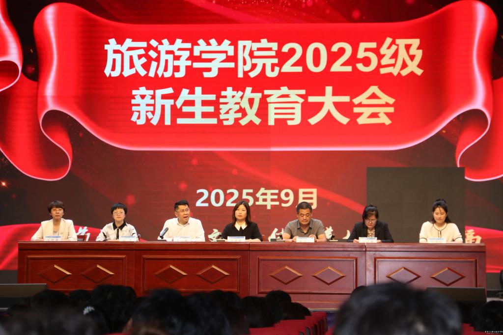 9月1日,旅游学院以“传递薪火,传承文化,传播美好,传送幸福”为主题,举行2025级新生入学教育大会。学院党总支书记康爱霞,党总支副书记、院长李玉林,副书记侯海荣,副院长刘芳,学院专职组织员、办公室主任刘晓丽,广慧金通教育集团驻校负责人刘涛涛,各专业负责人及全体辅导员、班主任、2025级新生共同参加。