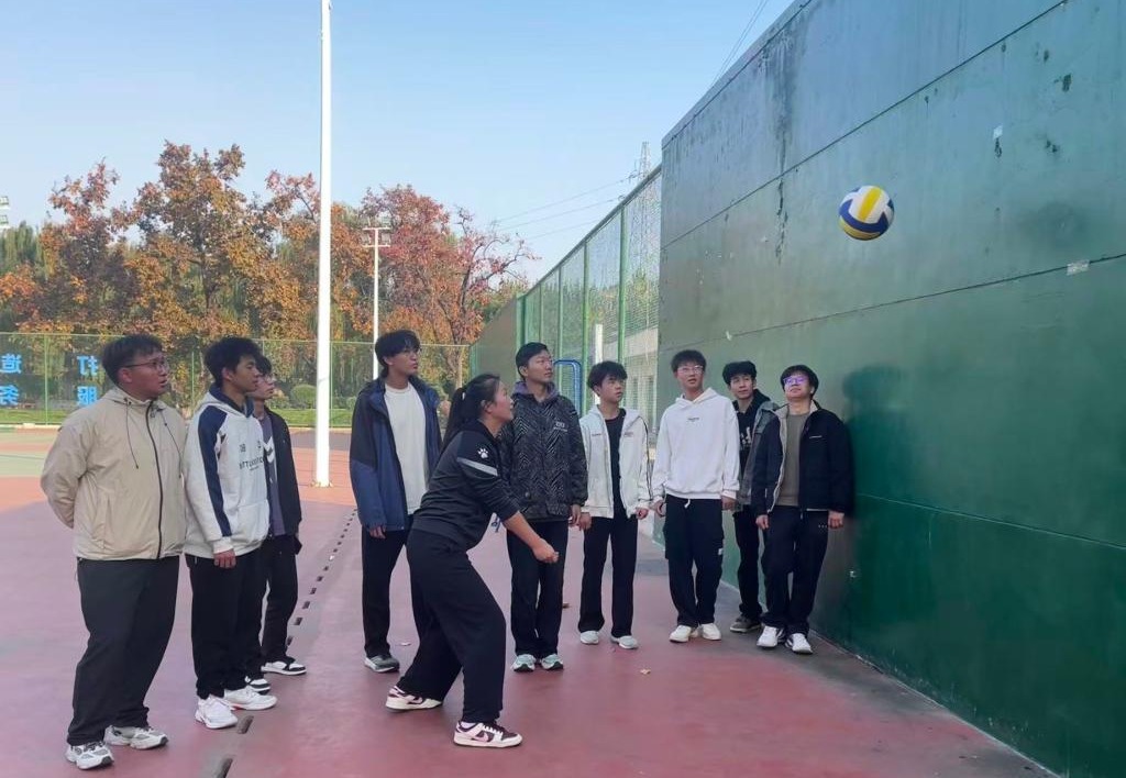 在示范课环节,铁晓琳老师以健美操为主讲内容,凭借扎实的专业功底和丰富的教学经验,为在场师生呈现了一堂高质量的体育课程。课堂上,铁晓琳以精准有力的口令引导学生完成动态拉伸与专项激活准备,迅速调动起学生的身体机能与参与热情。教学过程采用“分解讲解 — 示范展示 — 分组练习 — 组合创编”的阶梯式教学法,将动作要领拆解细化,每一个摆臂角度、踏步节奏都讲解得清晰到位。作为青年教师的教学展示,尤静静老师以“排球正面双手垫球技术”为核心内容,精心设计教学流程:从垫球手型、站位姿势的理论讲解,到亲自示范垫球时的发力顺序与身体平衡技巧,再到组织学生进行“双人对垫”“分组竞赛”等实践练习,教学环节衔接自然,重点突出,赢得了观摩教师的认可。