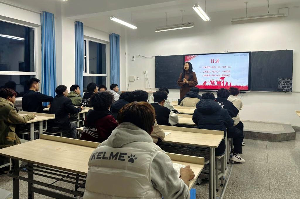 在法治教育主题班会上,辅导员通过典型案例剖析、互动问答等形式,围绕校园贷、网络诈骗、交通安全、知识产权保护等学生密切相关的法律问题展开讲解,引导学生认清违法犯罪的危害,增强法治思维和自我保护意识,自觉做到知法、懂法、守法、用法。