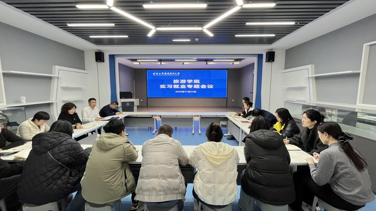 11月14日,旅游学院召开实习就业专题工作会议,启动“技能照亮前程”就业专项行动。学院班子成员、各专业主任、2026届学生班主任、辅导员及就业干事共同参会,聚焦职业教育高质量发展与产教评融合人才培养模式,对2026届毕业生就业工作进行全面部署。