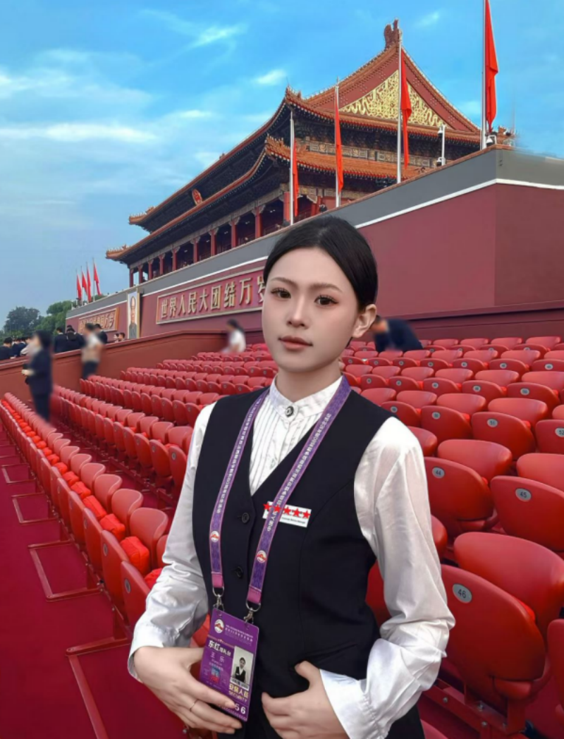 在抗战胜利80周年阅兵礼仪人员的选拔过程中,王乐同学凭借扎实的专业基础、优雅的仪态举止和过硬的政治素质,历经层层选拔最终获选,被确定为观礼台安保人员,承担了这一具有重大历史意义的礼宾和安保任务。